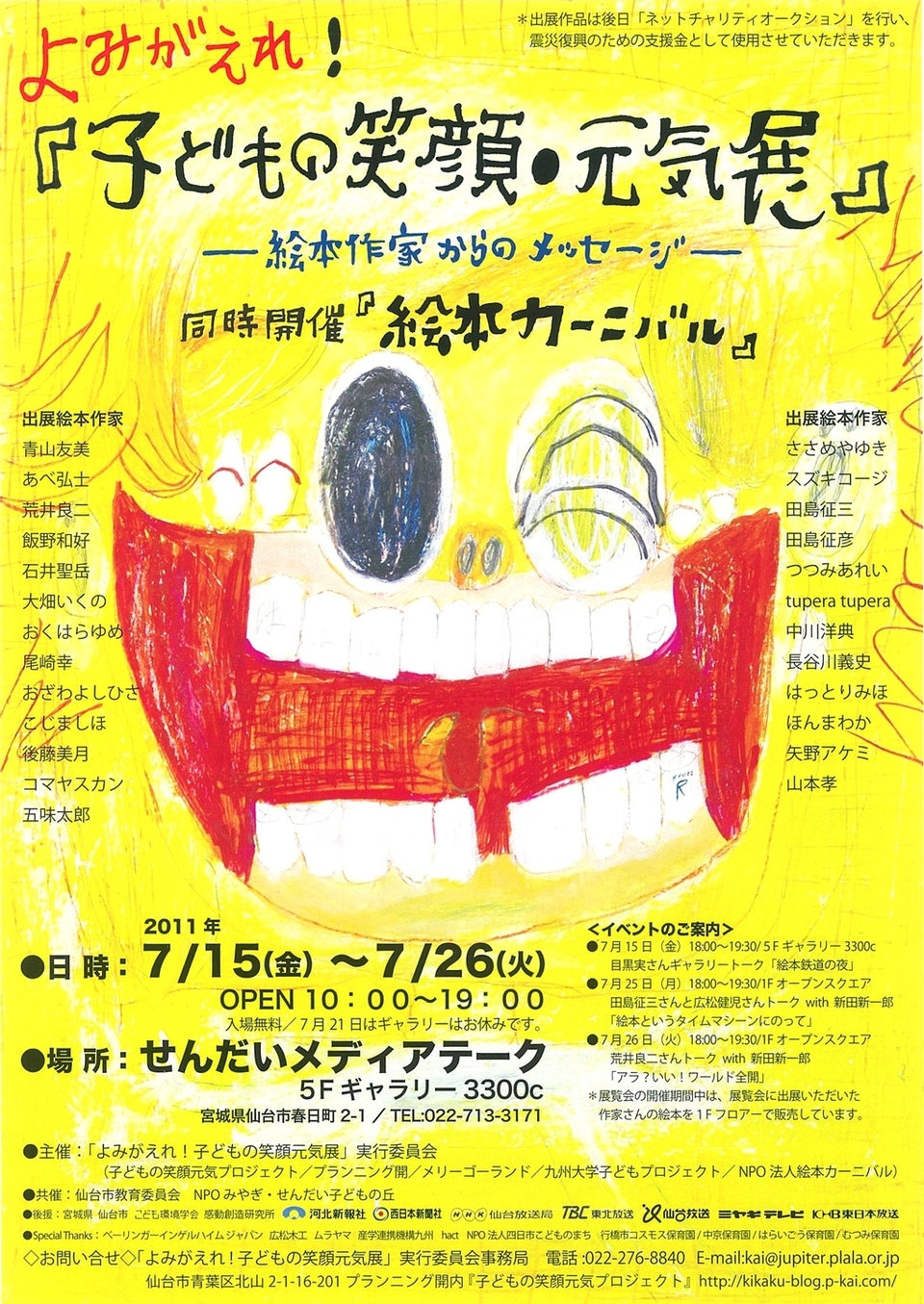 ●利府町民ミュージカル「ありのみの詩」旗揚げ公演 ●子ども未来フォーラム総合企画 ●バリ島タガス グヌンジャティ歌舞団招聘 ●年賀状より ●蔵王自遊楽校 おやこ寄席 桂文我さん ●アトリエ自遊楽校 1周年記念講演会 今江祥智さん ●大地祭~まほろばに舞う神々~ ●東日本放送「南の島で遊び隊」 ●地球感動倶楽部「シンガポール・マレーシア」 ●アトリエ自遊楽校 作品展「あべ弘士さんと遊ぶ」 ●灰谷健次郎さんがアトリエに遊びに来た ●地球感動倶楽部「オーストラリア・ケアンズ」 ●文士劇浮世絵長屋は大騒動「てくてく座」 ●蔵王自遊楽校 角野栄子さん ●サマーカレッジ「子ども学園」 ●森の自遊楽校 東北大演習林 ●湯の山温泉 谷川俊太郎さん 子どもの本専門店「メリーゴーランド」との共催です。 ●アトリエ自遊楽校スタッフ集合写真 「海辺の学校 in 鴨川」は子どもの本専門店「メリーゴーランド」との共催です。 ●海辺の学校 in 鴨川 加藤登紀子さん 海辺の学校 in 鴨川 永六輔さん ●海辺の学校 in 鴨川 江國香織さん ●松島水族館に泊まる ドイツこどものまち「ミニミュンヘン」 子どもの本専門店「メリーゴーランド」との共催です。 「海辺の学校 in 熱海」は子どもの本専門店「メリーゴーランド」との共催です。 ●おてんとさん自遊楽校 あべ弘士さん ●海辺の学校 in 熱海 元永定正さん 灰谷健次郎さん ●美術館探検「現代美術を学ぶ」 「海辺の学校 in 熱海」は子どもの本専門店「メリーゴーランド」との共催です。 ●おてんとさん自遊楽校 荒井良二さん ●海辺の学校 in 熱海 田島征三さん ●学研「脳スッキリ毎朝5分の脳元気ゲーム」 ●「人形の森」復活 絵と音の学校 五味太郎さん ●アトリエ自遊楽校 大感謝祭 ●ごっこ遊びでおしごとたいけん ●英語で脳スッキリ毎朝5分の脳元気ゲーム 絵本「ふしぎなたいこ」文:新田新一郎 絵:田島征三 ●ボストン「チルドレンズミュージアム」研修 あそびじゅつ in 北海道 「あそびじゅつ in 北海道」は子どもの本専門店「メリーゴーランド」との共催です。 ●春の自遊楽校 俵万智さん ●春の自遊楽校 いがらしみきおさん アトリエ自遊楽校に佐藤初女さんがやってきた ●子どもの笑顔元気プロジェクト ●復興支援「絵本カーニバル」 ●復興支援「子ども未来人サミット」 ●子どもの笑顔元気プロジェクト ●こども環境学会 仙台大会 ●ドイツ・ゲルトさんを訪ねて ●子ども・若者の参画による復興まちづくり 郡和子さん ●語りつぎお話絵本3月11日 ●あそびじゅつ in ねぶた 子どもの本専門店「メリーゴーランド」との共催です。 ●復興支援「笑顔バス」 ●地球感動倶楽部「バリ島」 ●地球感動倶楽部「アフリカ」 ●アトリエ自遊楽校:ロバの音楽座 ●新社屋完成 ●あそびじゅつ in 北海道 子どもの本専門店「メリーゴーランド」との共催です。 ●白石市・斎川「ころ柿作り」 ●アトリエ自遊楽校:成田良治さん ●多賀城「絵本フェスタ」スズキコージさん ●保育学セミナー 新沢としひこさん&ケロポンズ 子どもの本専門店「メリーゴーランド」との共催です。 ●地球感動倶楽部「アフリカ」 ●祭りに遊ぶ「加美町」 ●会津鉄道の車両に絵を描く あべ弘士さん ●「こども・保育・人間」汐見稔幸 著 ●日本保育学会・仙台大会 汐見稔幸さん 大豆生田啓友さん ●白石こじゅうろうキッズランド開館 ●アトリエ自遊楽にたにぞうさんがやってきた ●こじゅうろうキッズランド1周年 飯野和好さん こじゅうろうキッズランド 大友剛さん ●AI時代を生き抜く力 汐見稔幸さん ●「えほん・絵本・134冊」増田喜昭 著 ●仙台幼児保育専門学校 増田喜昭さん 仙台幼児保育専門学校 あべ弘士さん 地球感動倶楽部「イタリア」 ページトップへ