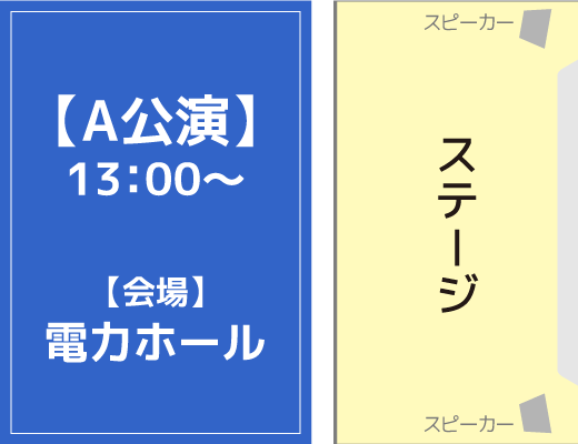 ステージ舞台袖には大きなスピーカーが設置され、大きい音量のため、刺激が強く感じられる場合がございます。